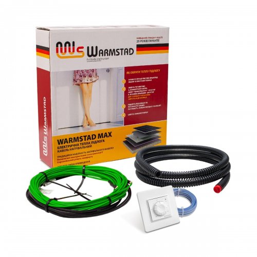 Комплект-Кабель нагревательный Warmstad Max EcoTWIN-220-18 W/m с терморегулятором RTP – двужильный электрический нагревательный кабель от французского бренда Atlantic, производитель ООО «Термопад ПВТ», Индия.