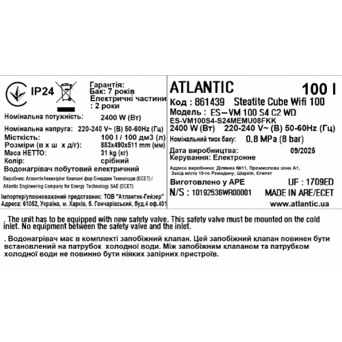Ці конструктивні рішення забезпечують дуже високий ресурс і надійність бойлерів серії Atlantic Steatite Cube Wi-Fi.