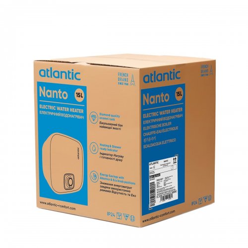Atlantic Nanto SWH 15U M-N1 – нова модель побутового накопичувального електричного водонагрівача малого об'єму з механічним типом управління від французького бренду Atlantic, виробник «SNC Atlantic Water Heater Asia», Таїланд.